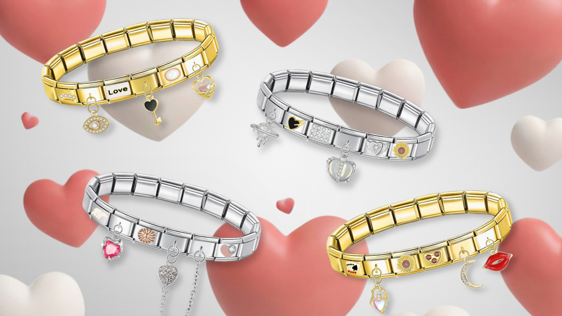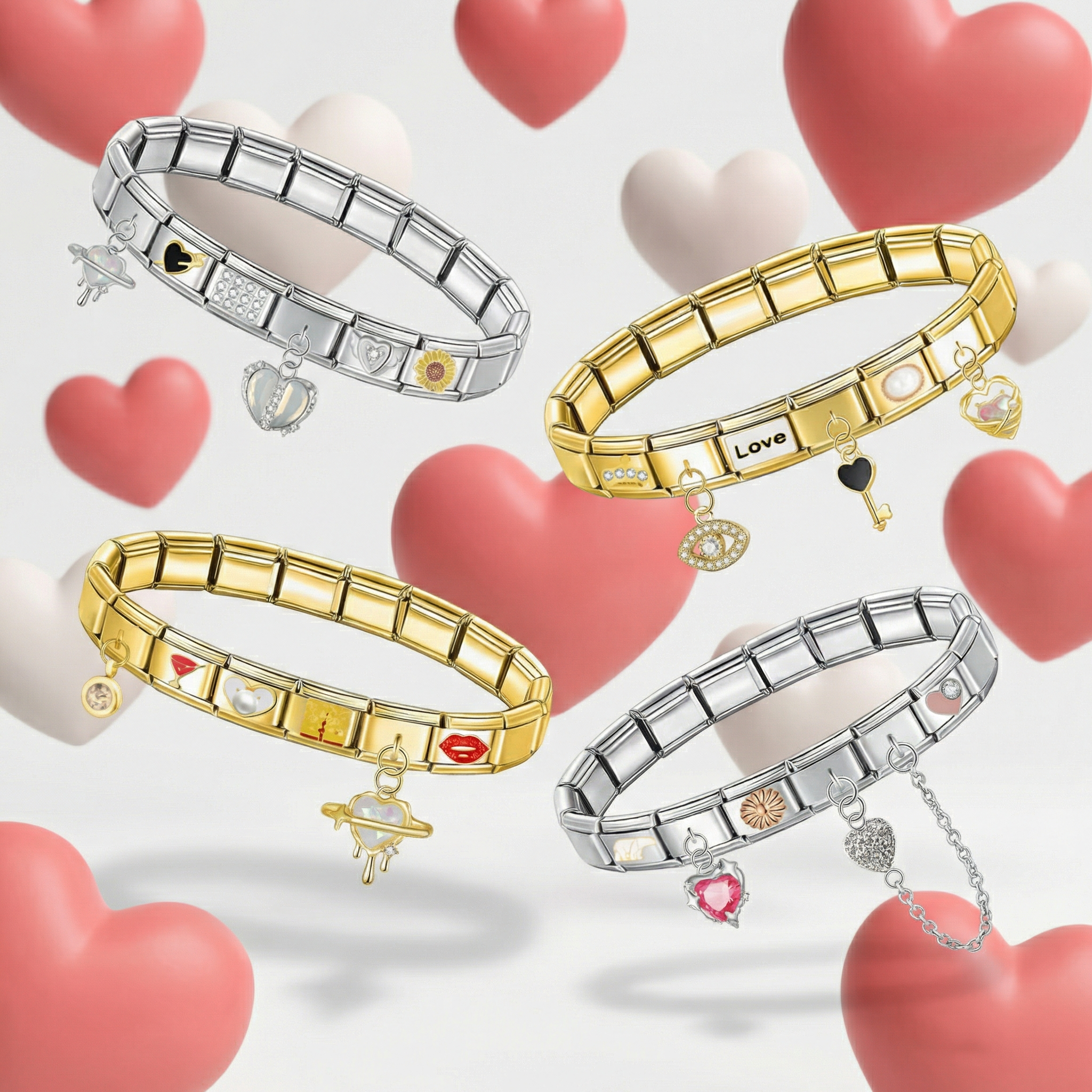 Hugging Pink Hearts on Gold